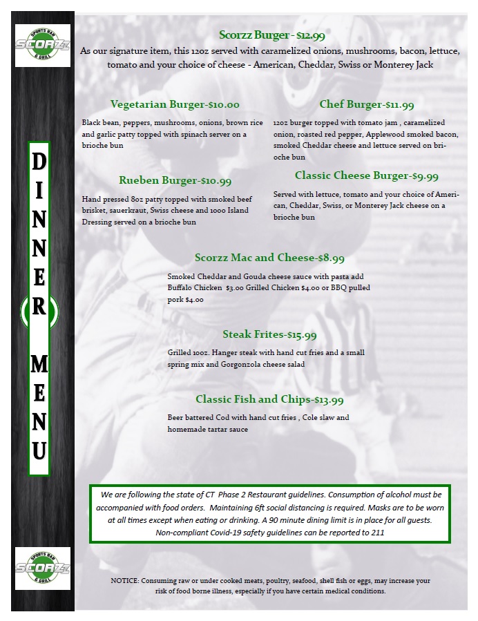 Welcome to Scorzz Sports Bar & Grill, a lively gem in Norwich, CT, perfect for sports lovers and foodies alike. This vibrant bar offers a diverse menu that promises to satisfy every appetite. Dive into their tantalizing sandwiches, featuring favorites like the BBQ Pulled Pork and Smoked Brisket Rueben, or enjoy a flavorsome Buffalo Chicken Wrap. For starters, indulge in their crispy Traditional Wings or the delightful Buffalo Chicken Quesadilla.